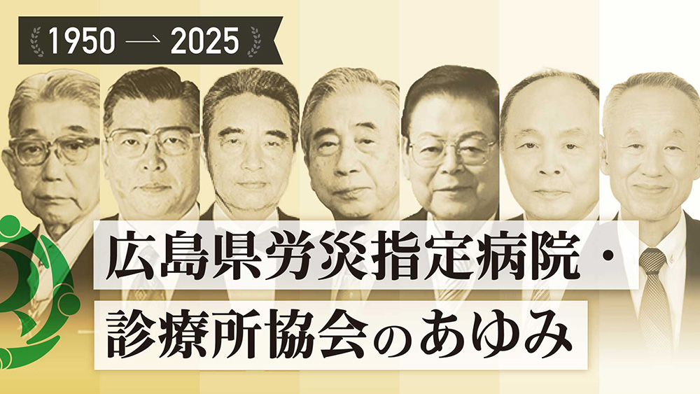 1950年(昭和25年)に広島県労災指定医協会として設立した本協会は、円滑な労災保険制度の運営と被災労働者の迅速な保護を理念に掲げ、広島県医師会と一体となって広島労働局・労災保険情報センター(RIC)など関係機関とともに「オール広島」の体制で被災労働者の早期社会復帰を支援します。